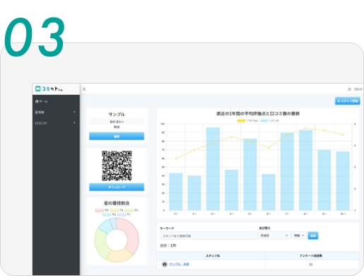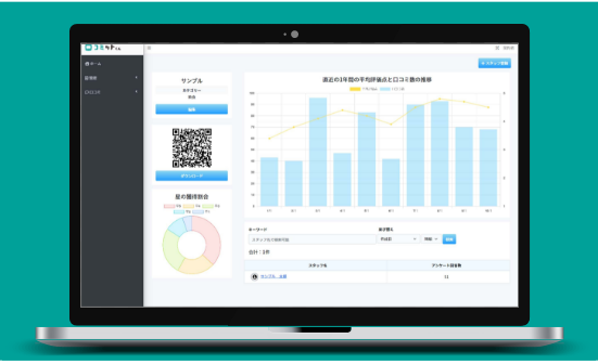星の獲得割合・月毎のアンケートの数の推移などがわかることで、高い評価の場合は自社の強みを再認識することができ、よくない評価のときでも口コミの質向上のための有効な施策を考えることができます。