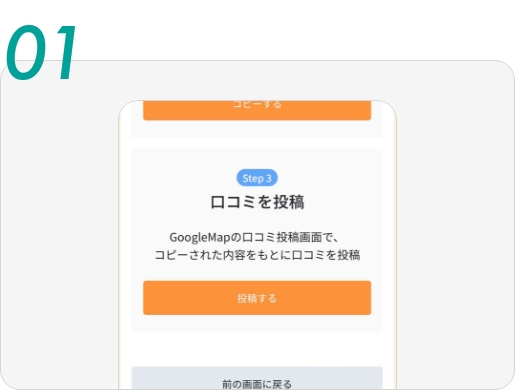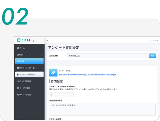 集めたアンケートの中で、基準より高い評価がついた場合のみGoogleの口コミ投稿画面へのリンクを表示し投稿の促しをすることができます。